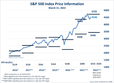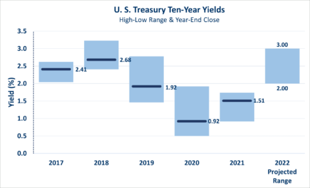 We expect S&P 500 earnings per share to grow at a mid-to-high single digit rate in 2022 driven by the still solid underlying economic environment. However, we are monitoring the impact of inflation, with specific attention to tight labor market conditions and resulting wage gains on corporate profitability. Also, the Fed’s aggressive tightening actions could slow economic activity resulting in weaker than expected corporate sales and earnings growth.