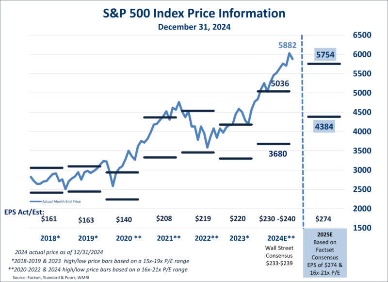 Equity markets performed strongly, with the S&P 500 closing 2024 up 25.0% on a total return basis. Stock prices initially rallied following the presidential election but lost some momentum as the year-end holidays approached. The S&P 500 reached an all-time high of 6090 on December 6, at the time reflecting a 29% year-to-date return, before settling at 5882. The rally was driven by expectations of pro-growth, pro-business policies, such as tax cuts, deregulation, and a more favorable stance toward mergers and acquisitions.